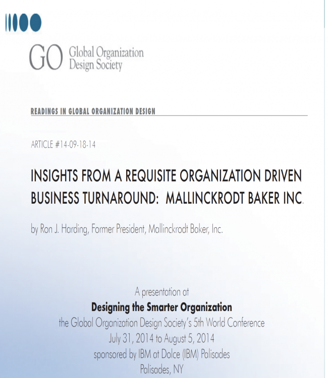Insights from a Requisite Organization Driven Business Turn-around: Mallinckrodt Baker Inc.